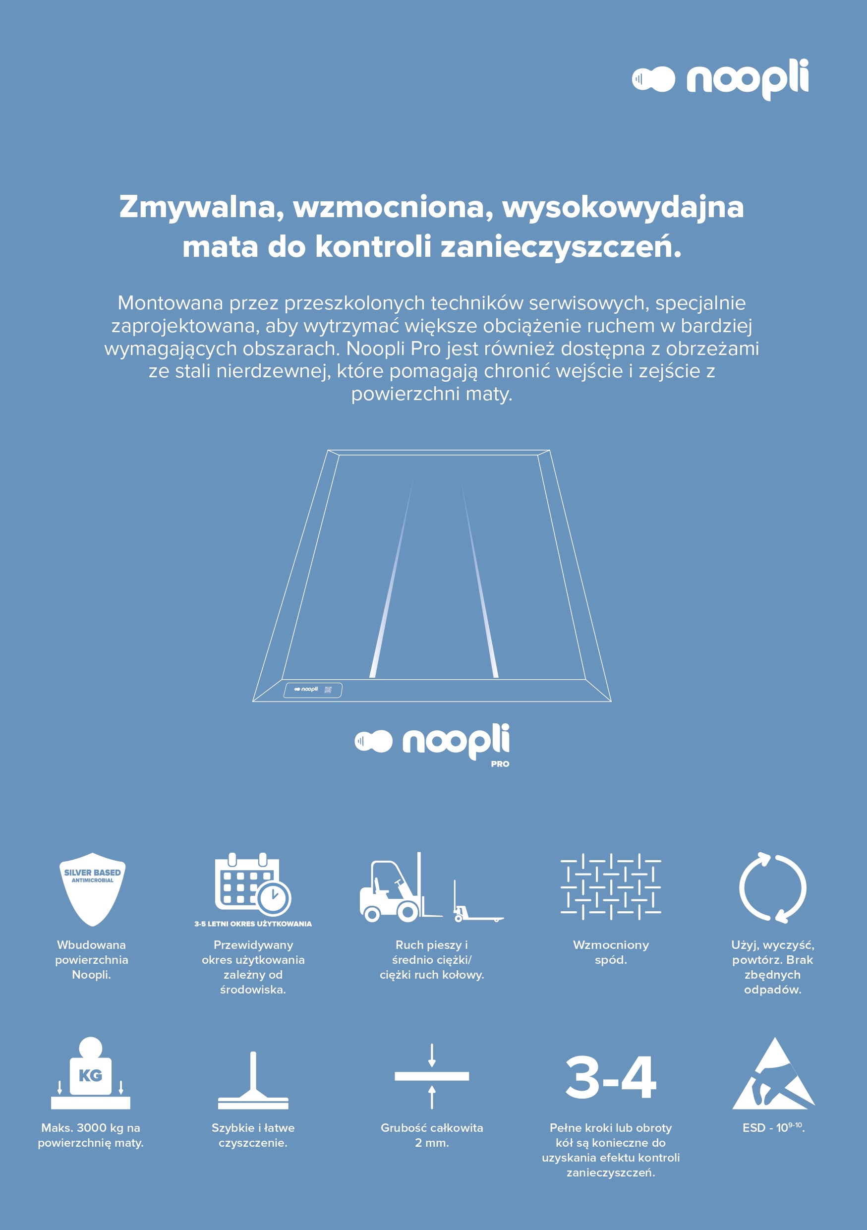 Noopli Pro to system podłogowy o zwiększonej wytrzymałości ze wzmocnionym podłożem. Fachowo zainstalowany przez przeszkolonych techników serwisowych.